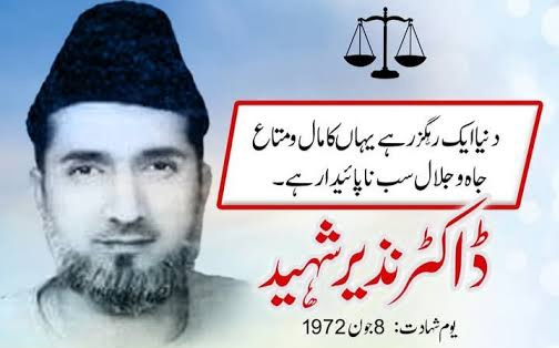 ڈاکٹر نذیر احمد شہید12فروی1922ء کو ضلع جالندھر کے مقام انوکھروال میں پیدا ہوئے اور 8جون 1972ء کو ڈیرہ غازی خان میں شہید ہوئے۔ ابتدائی تعلیم اینگلو مڈل اسکول پھرالہ اور پھر گورنمنٹ ہائی سکول راجن پور سے حاصل کی۔ مزید تعلیم کے لیے ایمر سن کالج ملتان چلے گئے۔ کالج میں دوران تعلیم ساتھی طلبہ کی تعمیر کردار کے لیے اپنے طور پر ایک تنظیم “جمعیت اسلامی” کے نام سے قائم کی۔ 1945ء میں ایف اے کی تعلیم ادھوری چھوڑ کر سنٹرل ہومیو پیتھک کالج لاہور میں داخلہ لیا.انہی دنوں مولانا مودودی کی دعوت سے متعارف ہوئے اور اپنی تمام صلاحیتوں کو جماعت اسلامی کے لیے وقف کردیا۔ 1946ء میں صوبہ بہار کے امدادی کیمپوں میں خدمات انجام دیں۔ بعد ازاں سید مودودی کی ہدایت پر ڈیرہ غازی خان کو مرکز دعوت و تبلیغ بنایا اور کسب معاش کے لیے ہومیو پیتھک پریکٹس شروع کی۔مرحوم انتہائی بے باک،مخلص اور جری انسان تھے۔شخصی خوبیوں اور عظمت کردار کے باعث عوام میں اس قدر مقبول تھے کہ 1970ء میں جاگیرداروں اور سرداروں کے مضبوط گروپ کو شکست دے کر رکن قومی اسمبلی منتخب ہوئے۔1962ء سے1970ء تک تیرہ مرتبہ گرفتار ہوئے۔ پیپلز پارٹی کے دور حکومت میں آپ کو گولی مار کر شہید کردیا گیا۔ مختلف اوقات میں جماعت اسلامی کے مقامی اور ضلعی امیر، مرکزی مجلس شوریٰ اور مجلس عاملہ کے رکن اور صوبہ پنجاب کے نائب امیر رہے۔ مرحوم شعر بھی کہتے تھے۔ ڈاکٹر نذید شہید کے مکاتیب کا مجموعہ”لب زنداں” شائع ہوچکا ہے۔